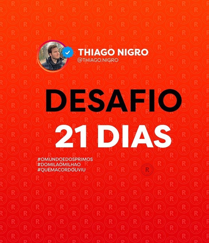 No Instagram ele apareceu com o desafio 21 dias, O que é isso? Bem ele se chama 21 dias por que especialistas falam que para você ter um hábito, precisa primeiro criar uma rotina durante 21 dias, depois você já vai fazer aquilo naturalmente, aí sua rotina vira hábito. Os ricos sempre falam que para se ganhar muito dinheiro, primeiramente você tem que acordar cedo, e esse desafio dos 21 dias do Thiago Nigro é justamente isso, acordar cedo juntamente com outras milhares de pessoas que assistem ao seu canal, às 5:06 da manhã, falando sobre investimentos, e em como chegar “lá”.