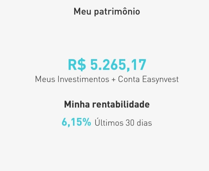 A quantia ainda é pouca, mas devo ressaltar que o valor total estava em torno de R$ 11.000,00. Retirei praticamente R$ 5.000,00 para poder ajudar familiares endividados, seguido de uma desvalorização devido o Covid-19.